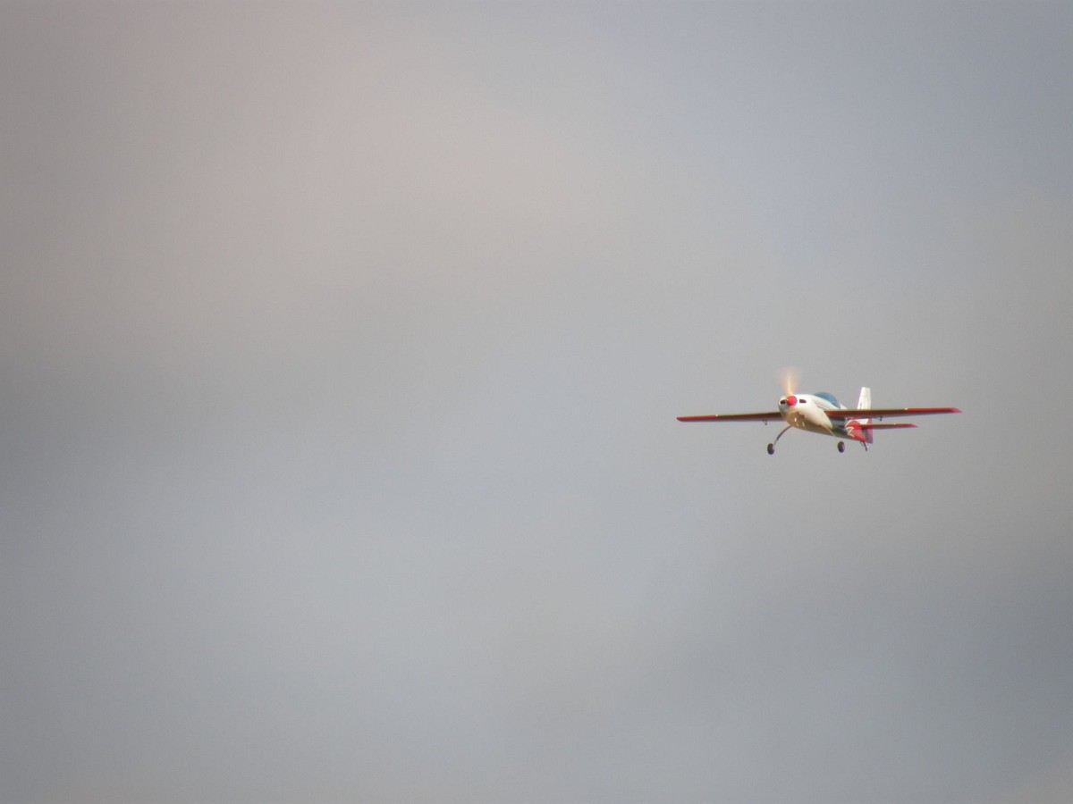 Postupne sme teda do vzduchu poslali za veľkou Včelou aj malú Včelu, Rival Shorta aj Trénera a tiež Vladov veľký motorák. Zatiaľ čo Včely sa bez problémov preháňali na ploche ihriska, ostatným modelom bola táto plocha malá a po odštartovaní museli trochu vyššie a ďalej. Ľudia si mohli krky vykrútiť, občas aj piloti 😉 my sme však zvyknutí.
