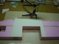 Ohýbanie Depronu do potrebného oblúka je kapitola sama o sebe. Niekto to robí za tepla, niekto valcovaním dosky násadou na metlu, ja o hranu stola, tak ako som sa naučil ohýbať papier do oblúka pri stavaní papierových vystrihovániek z časopisu „ABC mladých techniků a přírodovědců“. Princíp sa ťažko vysvetľuje, ale je jednoduchý a funguje. Dosku Depronu oprieme o hranu stola alebo pracovnej dosky pod uhlom 45° a zhora pritlačíme cez Depron dlaňou na hranu za súčasného ťahania Depronu druhou rukou smerom dole. Pozor na zlomenie Depronu zohnutím dlane alebo prílišným tlakom! Stačí pár ťahov správne orientovaného Depronu a oblúk je na svete. Skúsim poprosiť niekoho z kolegov v klube, aby ma pri tom odfotil, bude to názornejšie.