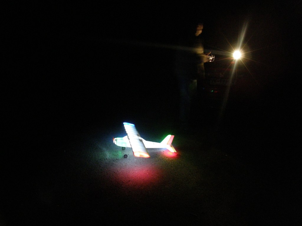 Vlado neodolal a vyskúšal na ihrisku aj svoj veľký motorák. Štart nie je problém, aj takýto veľký a ťažký model dokáže cez celé ihrisko nabrať rýchlosť a výšku, aby bezpečne zatočil a dokázal letieť. S napätím sme očakávali pristátie. Predpokladali sme, že bude dlhý. U nás je prílet komplikovaný budovami telocviční, je potrebné nasadiť na pristátie z dosť veľkej výšky. Potom už nie je bez klapiek veľa času a miesta na zníženie rýchlosti. Model dosadol kúsok pred veľkým vápnom a na konci ihriska sa zastavil len za pomoci zatáčky. Bezpečne.