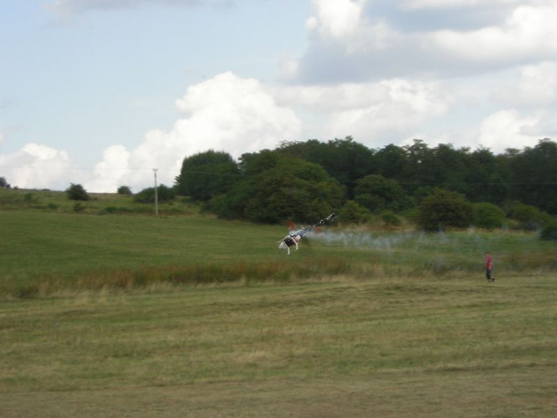 Dnes som si polietal naozaj dosť. Každá baterka bola vo vzduchu dvakrát. O siedmej večer som pristával po siedmych minútach letu so sedemčlánkom NiCd a všimol som si, že vrtuľa je v pozícii, kedy list trčí smerom dole a to sa mi ani trochu na pristátie nepáči. Brnkol som do kniplu plynu, no motor nereagoval, šťava už v baterkách nebola. Na pristátie v obilí som bol trochu vysoko a nemal som odvahu prudšie dosadnúť, tak som zvolil plynulý prelet nad asfaltom a dúfal som, že sa dostanem až na trávu na druhej strane. Márne.