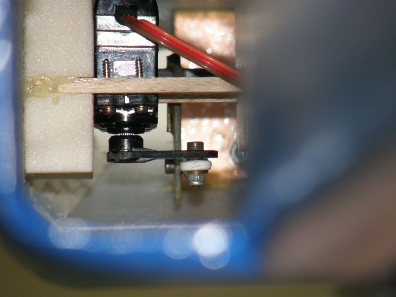 Ako som zistil v dielni po odstránení (liehom) tavného lepidla, ktoré držalo káble k motorovej gondole, prerušený bol červený káblik medzi reglom a motorom. Cín držal, káblik sa zlomil. Opravil som spoj, model vyskúšal a je pripravený na ďalšie lietanie. Mám aj k nemu celkom tri baterky 🙂