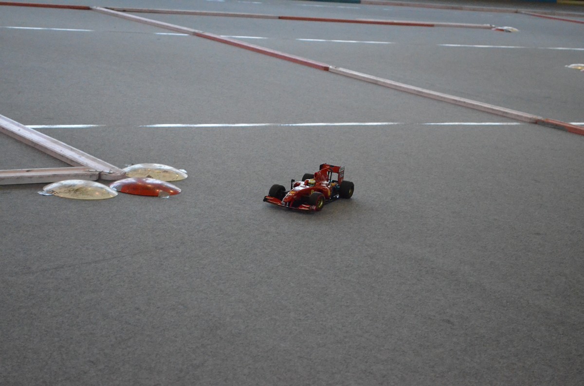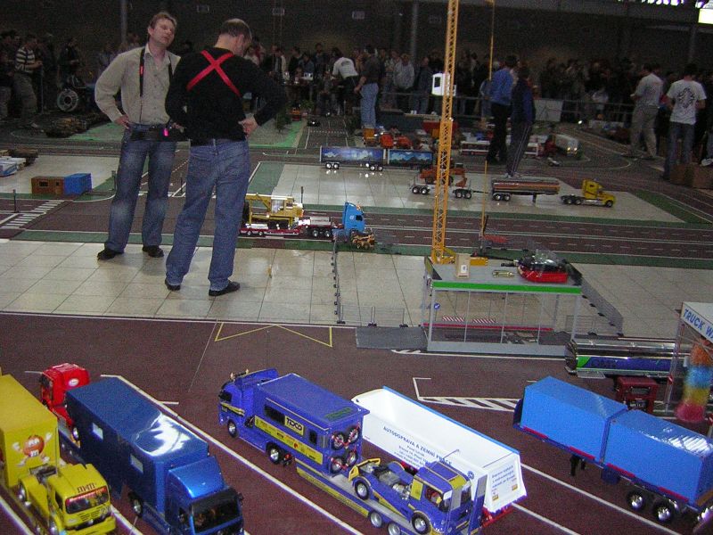 Počas príchodu divákov sme začali dvomi krátkymi tréningovými letmi Mirovho Juniora a Maťovho Gripena. Potom Miro K. odpálil v strede ihriska raketu a ujal som sa slova. Predstavil som súčasne všetky modely aj modelárov. Na ploche sme mali: Mirovho Juniora s V-krídlom a môjho s U-krídlom, elektrovetroň a Gripena z dielne Maťa, nelietajúcu moju Speedy Bee, elektrobugynu 1:12 a na stojanke buggy 1:8 3,5 ccm (pri sobotňajšej skúške zrazu v diaľke sa zablyslo, AM 27 MHz súprava na chvíľu vysadila a pri náraze do obrubníka prasklo predné rameno). Po rakete išla na štart buggyna, ale v tráve dostával motor dosť zabrať a hrial sa, takže jazdy trvali tak 2 minúty a nasledovali prestávky. Potom Miro vzlietol s V Juniorom a po ňom ja s U Juniorom. Fučalo celkom zaujímavo a premenlivo, takže sa dali vystihnúť chvíľky pohodového lietania. Miro predvádzal ladné oblúky pod plynom, nálety nad plochu a iné svoje fičúry a keď náhle prestalo fúkať, radšej išiel na pristátie. Ja som sa tiež radšej držal vyššie, divákom som predviedol zopár premetov a miestami zápasil s vetrom, aj keď môj výkonnejší pohon si s ním ľahšie poradil a ušaté krídlo lepšie držalo smer. Pristál som celkom spotený za potlesku divákov a na stopkách som mal 2:50!