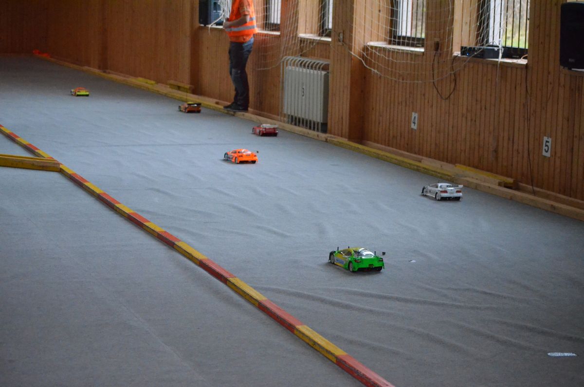 Vo voľných chvíľach, keďže okrem mazania pneumatík a nabíjania dvojčlánku 800 mAh som nemal inú robotu, som sa pokúšal fotografovať modely na trati. Opäť som si doniesol zrkadlovku Nikon D5100 a venoval sa nácviku panningu. To je metóda, ako aj v mizerných svetelných podmienkach vyfotiť ostré auto na rozmazanom pozadí. Skúšal som rôzne časy, s bleskom aj bez blesku, ale ako povedal Paľo, panning je o rukách a aj tu sa mám čo učiť. No pár fotiek sa mi podarilo. A keďže na preteku neboli bratia Hlavajovci, ktorí mi občas strčia do ruky ich nikona, tak dnes vám musia stačiť moje fotky 😉
